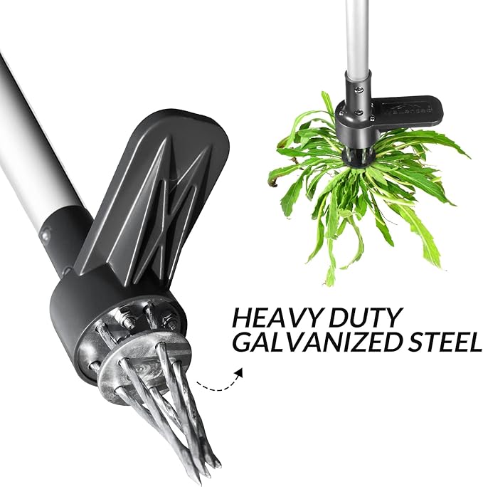 • Upgraded Weeder with Durable Material: Walensee upgraded weed removing tool's pole is made from high quality iron which is strong & durable, that can withstand your weight when you step on the foot pedal. It is also zinc plated to make it rust-resistant. The updated weeder not only have a beautiful looking, but it will be used longer, more convenient, and less labor. This is a durable garden weed puller, so you don't have to buy another weeder.