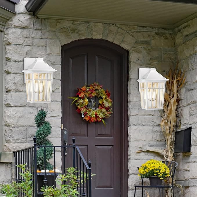 Darkaway Outdoor Sconce Lights Wall Light Fixtures, Front Porch Light Outdoor Wall Anti-Rust Waterproof Aluminum with Glass Exterior Light Fixture for Patio, Yard, Doorway, Garage(1 Pack, White)