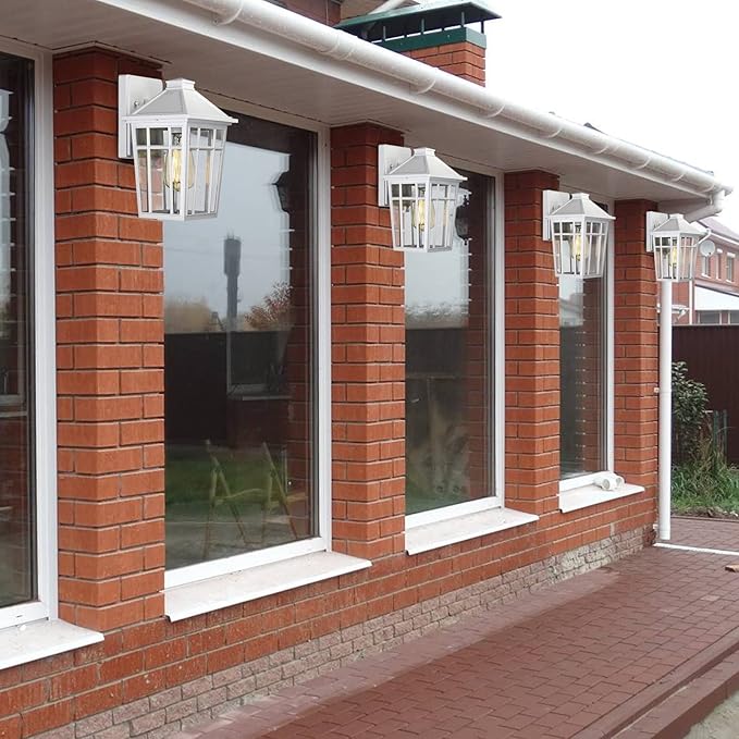• RETRO STYLE DESIGN - This patio porch lights adopts crafted white metal frame with seeded glass, a simple but artistic look. create pleasant design that complements any outdoor patio porch backyard decor.