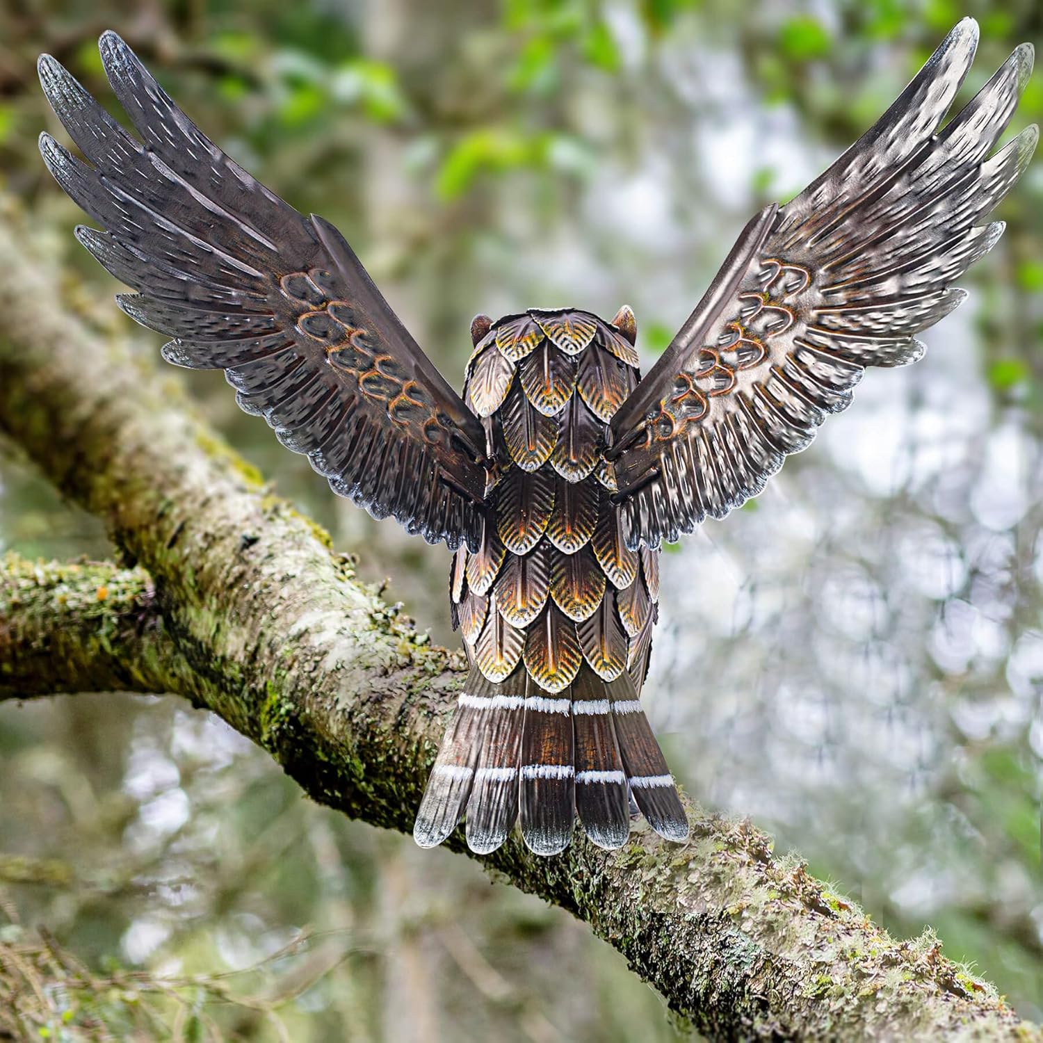 • Vivid garden accent: Garden owl statue is made of textured and layered metal sections. The lines of the bird are smooth and non-rigid, spreading their wings as if they are about to fly away. It will Invigorating your garden.
