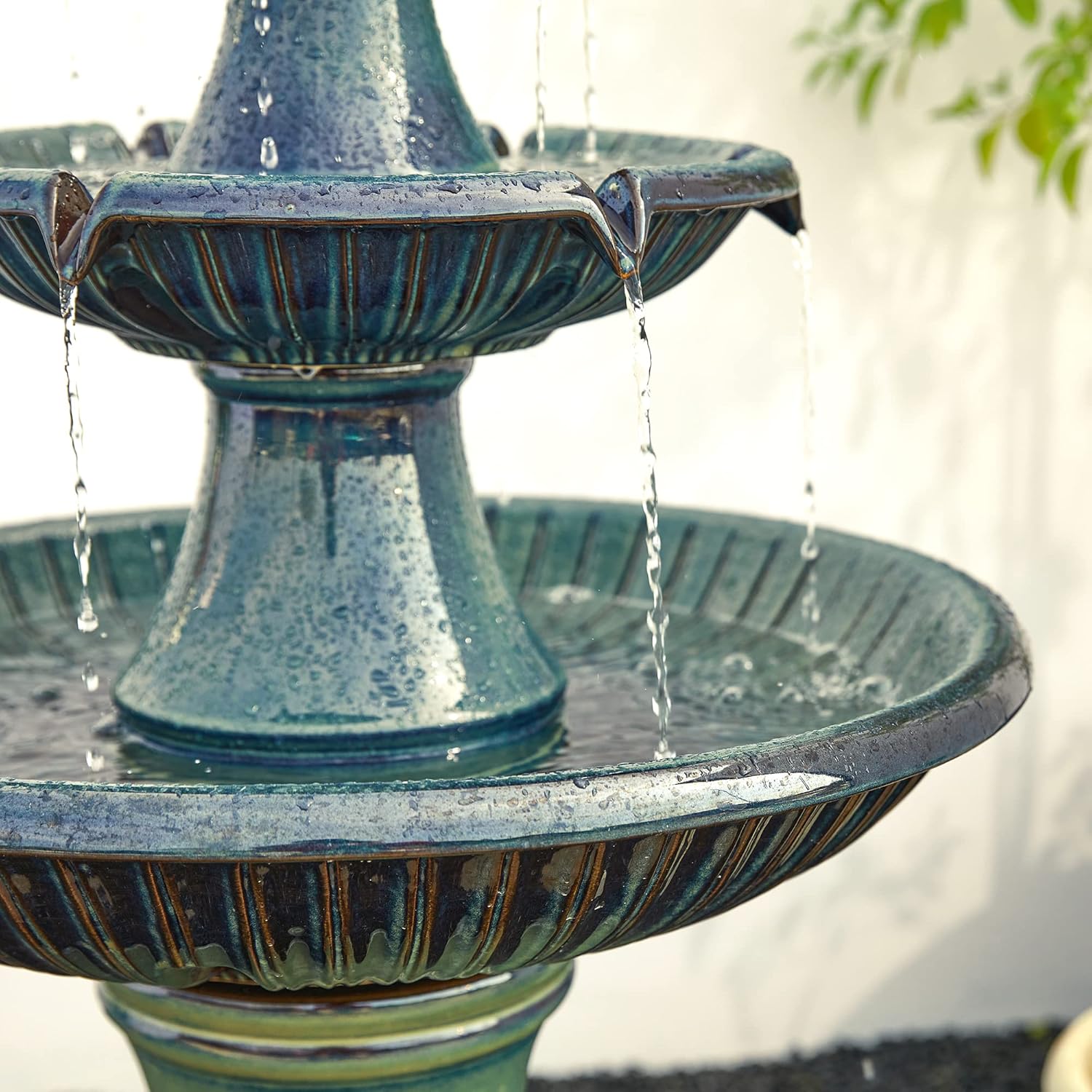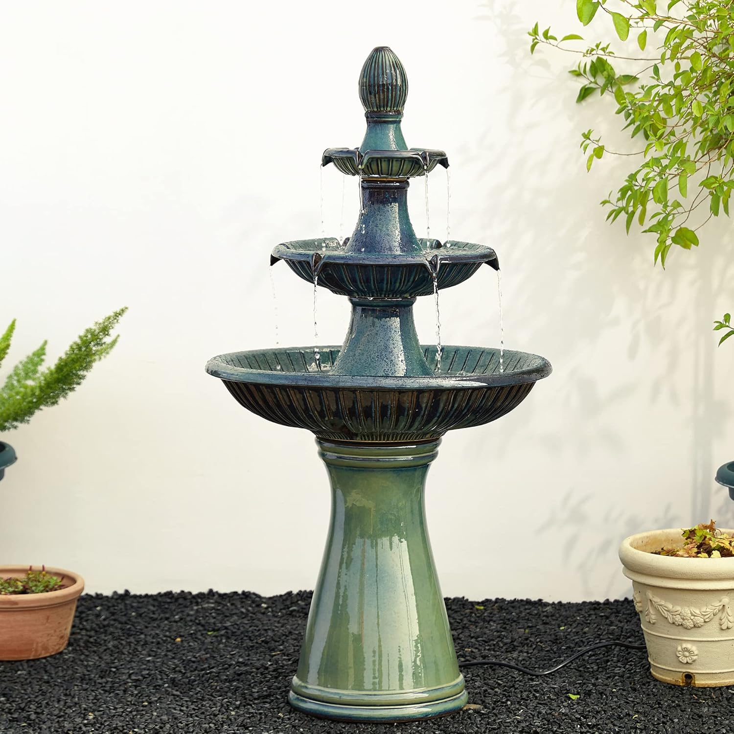 • ⛲Elegant 3-Tier Fountains Waterfalls --- Glitzhome Outdoor Waterfall Fountain features 3-tier design with charming turquoise glaze finish , with cascading falling water. The 3 tirer design lets the water come to life that looks vivid and interesting. Water bubbling up, cascading down through one basin and spilling into another, offers vintage weathered accent and aesthetics.