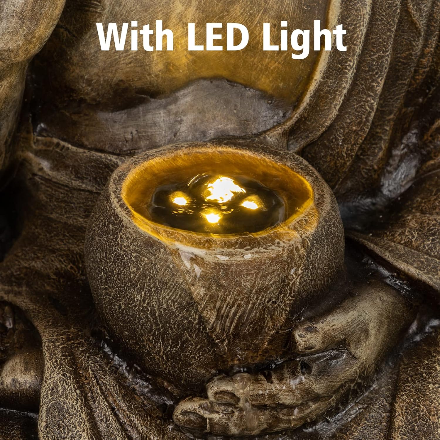 Ferrisland Buddha Waterfall Fountain Indoor & Outdoor, Freestanding Relaxing Water Fountain, Asian Zen Fengshui Patio Garden Backyard Decking Home Decor, Gift Ideas (Gold, 27.6" H)