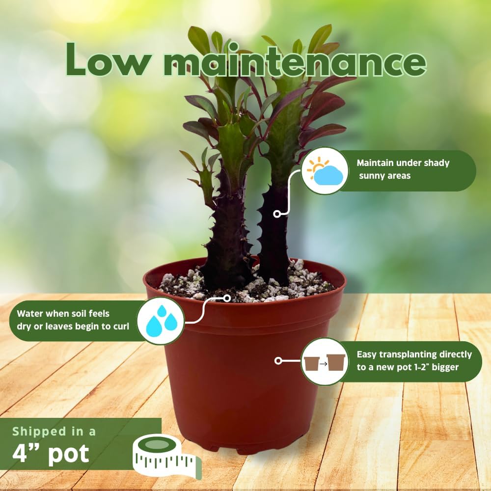 BubbleBlooms Red African Milk Tree, Euphorbia trigona 4 inch Pot, Red Cathedral Cactus Milktree