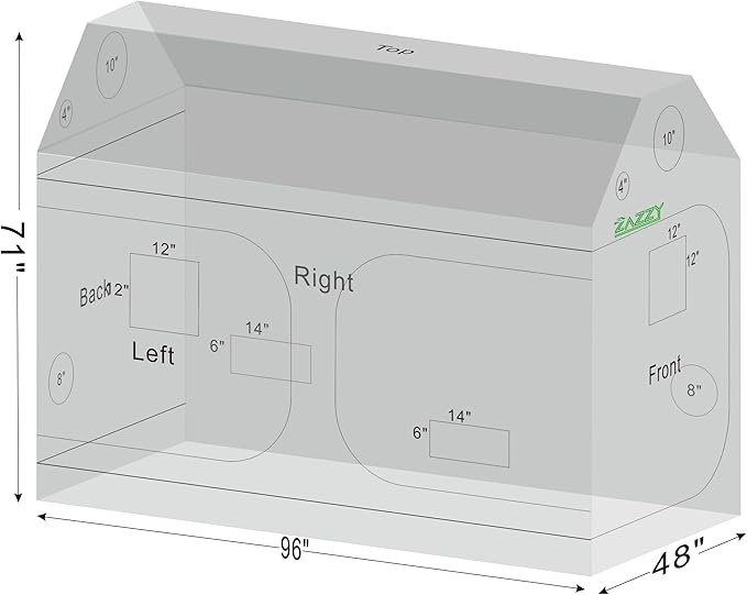 • Top-Quality Materials and Sturdy Frame---Zazzy plant grow tent made of superior quality reflective 600D mylar and double stitched to ensures the light blocking. Heavy duty all steel poles which are rated to handle at least 110 lbs. The frame is specially finished to ensure smooth installation and safe handling.