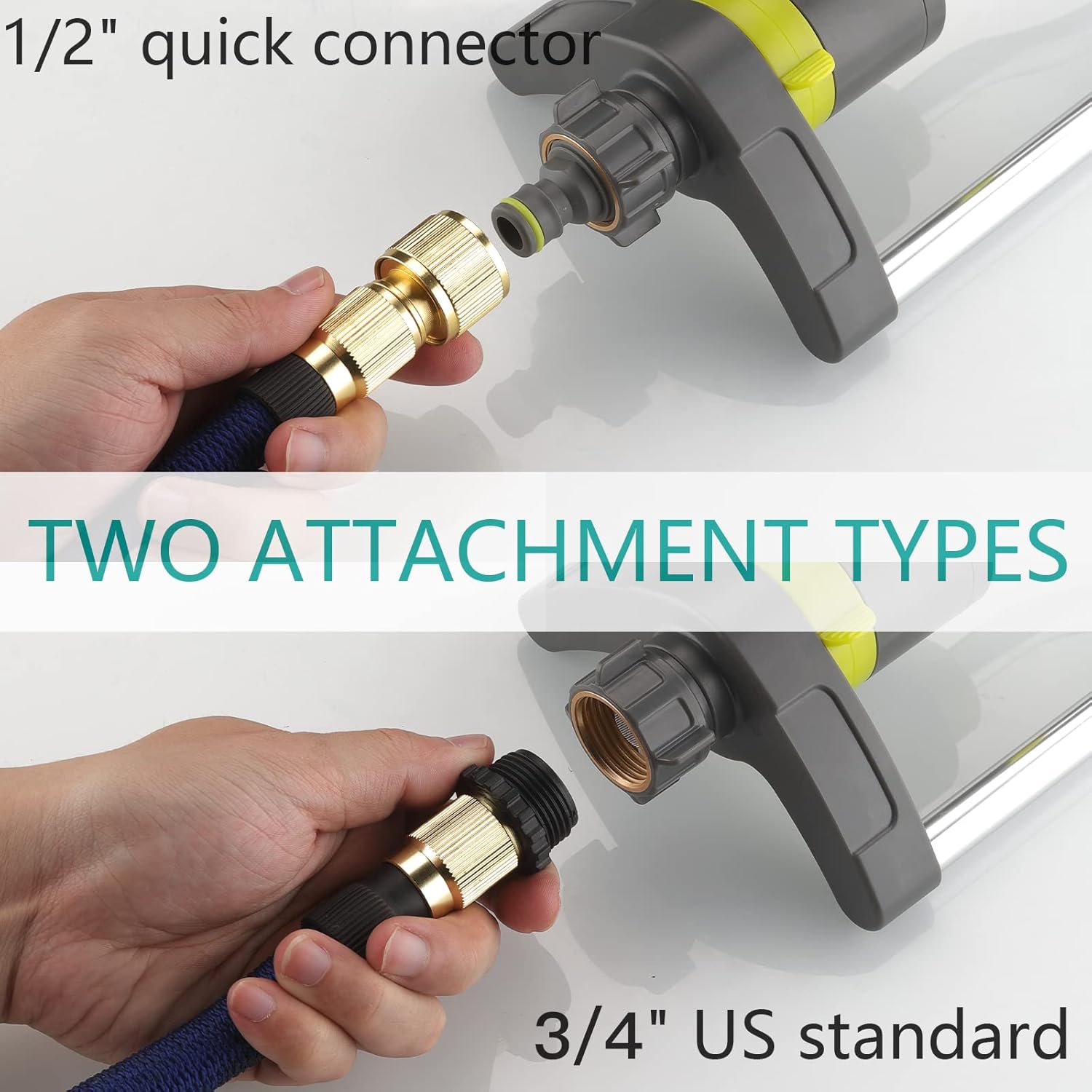 • [DIMENSIONS & SPECIFICATIONS] - Lawn sprinklers garden hose sprinklers is 18.3 x 5.5 x 3.5 in, with 17 brass nozzles for superior coverage up to 3600 sq ft., and an extra-large base can with stand any element and weather conditions for added stability and durability in the yard and garden