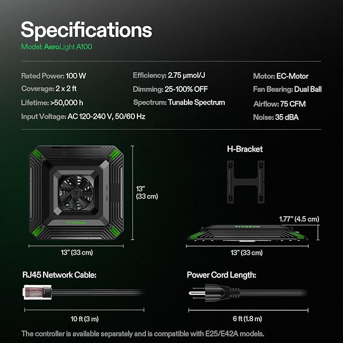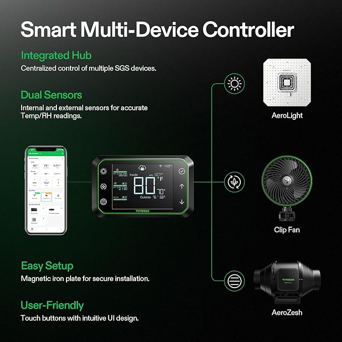 • Smart Control and Programming: The AeroLight is compatible with the Vivosun GrowHub Controller and App; You can also automate and customize day/night schedules to simulate natural environments; This package does not include this controller, which needs to be purchased separately, ASIN: B0BCFV11WG