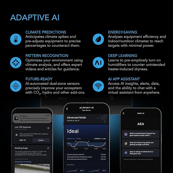 • AI-driven controller predicts climate shifts using real-time and historical data, auto-adjusting connected devices for optimal grow conditions.