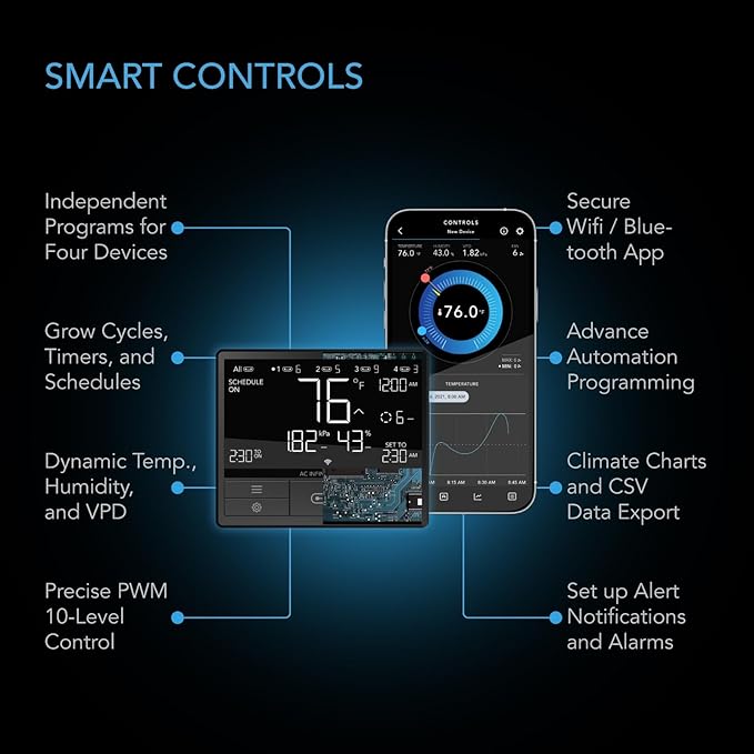 • Connect your mobile device to our app via WiFi to automate and track your grow tent climate from anywhere.