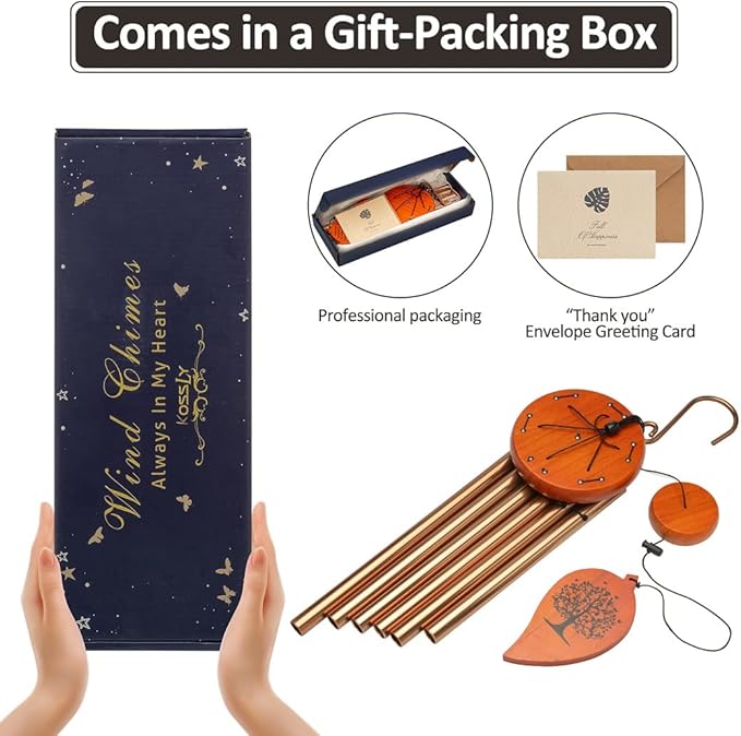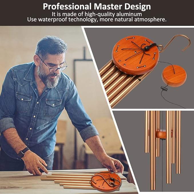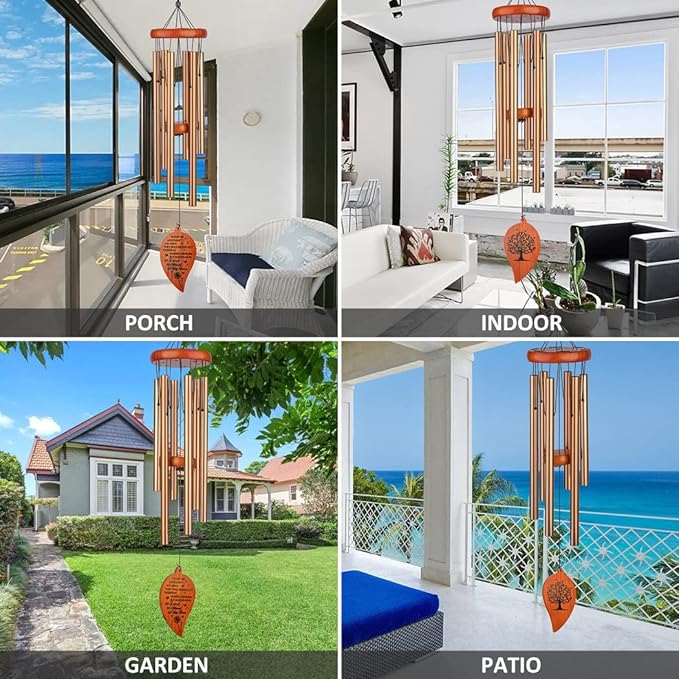 • 【Premium Memorial Wind Chimes】: This metal sympathy wind chime is durable, waterproof and wear-resistant, The wood parts are made from premium pinewood. The tubes on our all memorial wind chimes are made from an aluminum alloy that's powder coated with Black finish with copper vein, they are corrosion-resistant and thickened, well-tuned, so it can produces comforting smoothing deep tones.