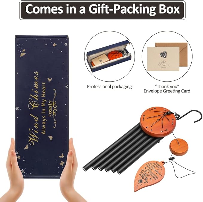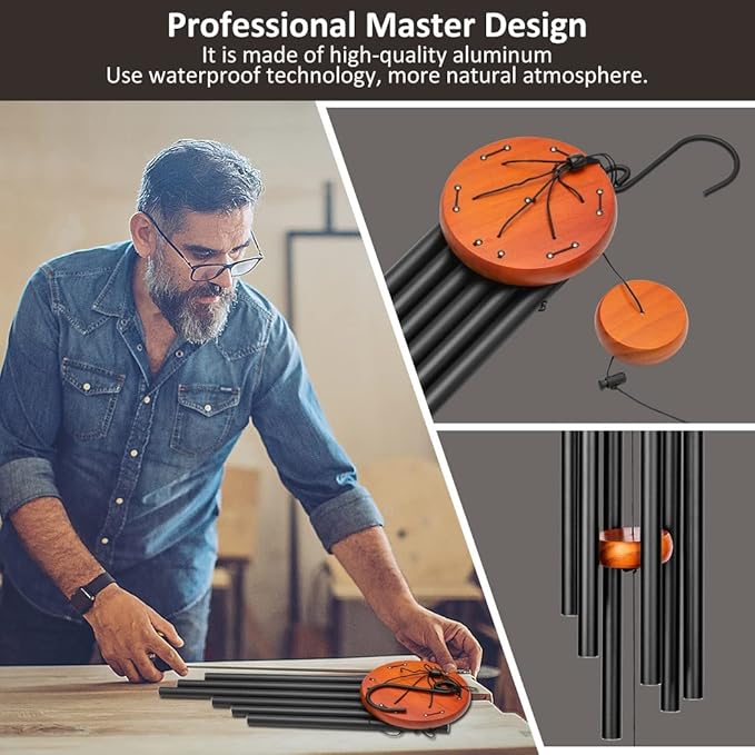 • 【Premium Memorial Wind Chimes】: This metal sympathy wind chime is durable, waterproof and wear-resistant, The wood parts are made from premium pinewood. The tubes on our all memorial wind chimes are made from an aluminum alloy that's powder coated with Black finish with copper vein, they are corrosion-resistant and thickened, well-tuned, so it can produces comforting smoothing deep tones.