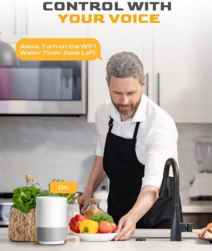 • Soil-Based Watering:WiFi water valve pairs with soil sensor (not included) for moisture-based watering. One WiFi hub connects up to 4 sprinkler timers.