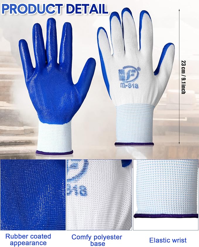 • What You Will Get: you will get totally 36 pairs of rubber coated gloves with length in approx. 23 cm/ 9.1 inches, in 2 colors, each color has 18 pairs, sufficient quantity will satisfy your daily using requirements; Note: if the box is damaged, you can check the product first, and then contact us to replace