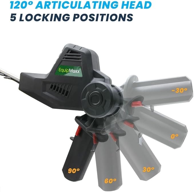 • Multi-angle: Featuring a 120° swivel adjustment that allows you to easily angle the trimmer head for optimal cutting. The 16-inch cutting blade makes it perfect for reaching the tops of hedges. This flexibility ensures that you can maintain a clean and uniform appearance in all parts of your garden, effortlessly shaping and managing your greenery.