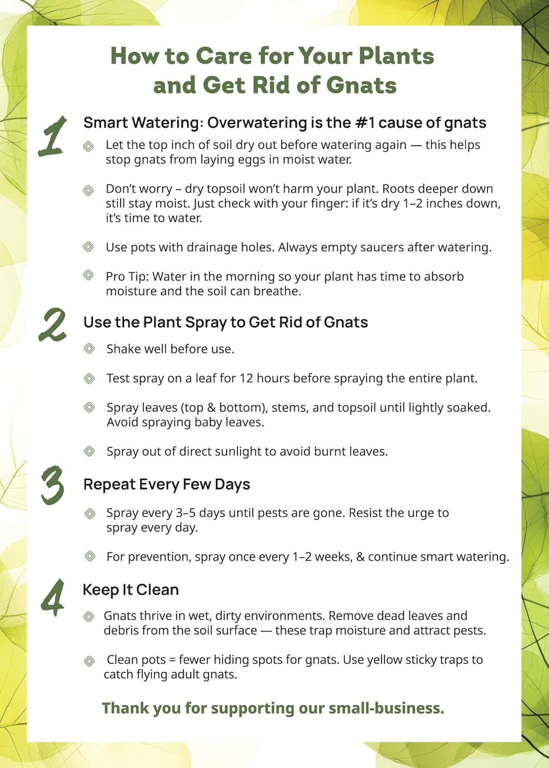 • NON-TOXIC PLANT GNAT TREATMENT: This peppermint oil spray for bugs is safe for use around children and pets when used as directed; it effectively repels flying pests, small mites, and get rid of gnat infestation, keeping your plants and home pest-free