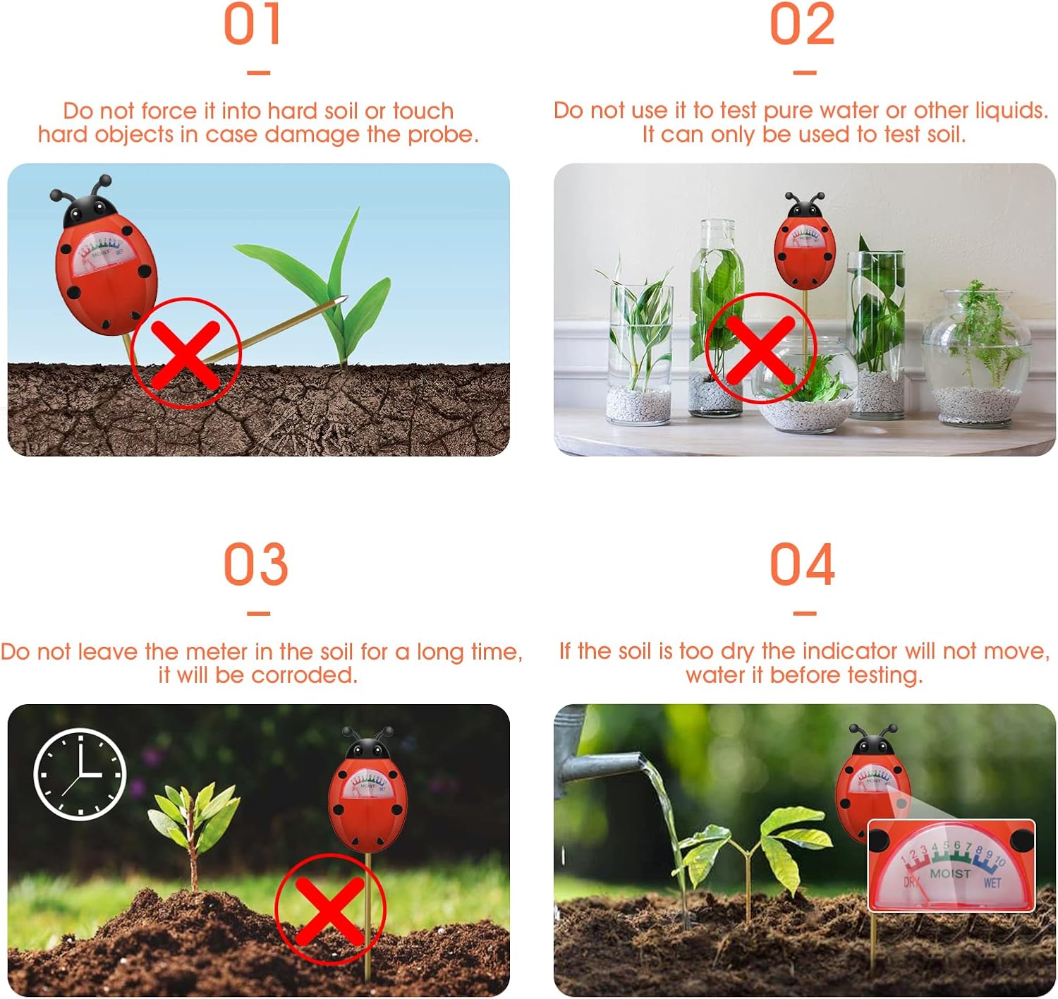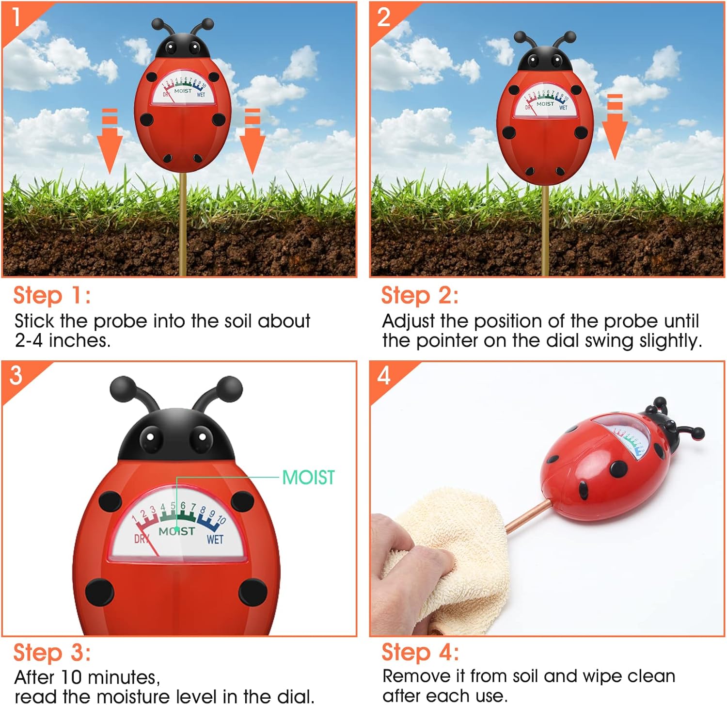 • 【CUTE LADYBUG DESIGN & PERFECT GIFT】Spruce up your garden tools with this fun and functional ladybug-themed moisture meter.Cute ladybug shape, suitable for children's gardening activities, and a perfect and practical gift for friends, kids, gardeners and others.