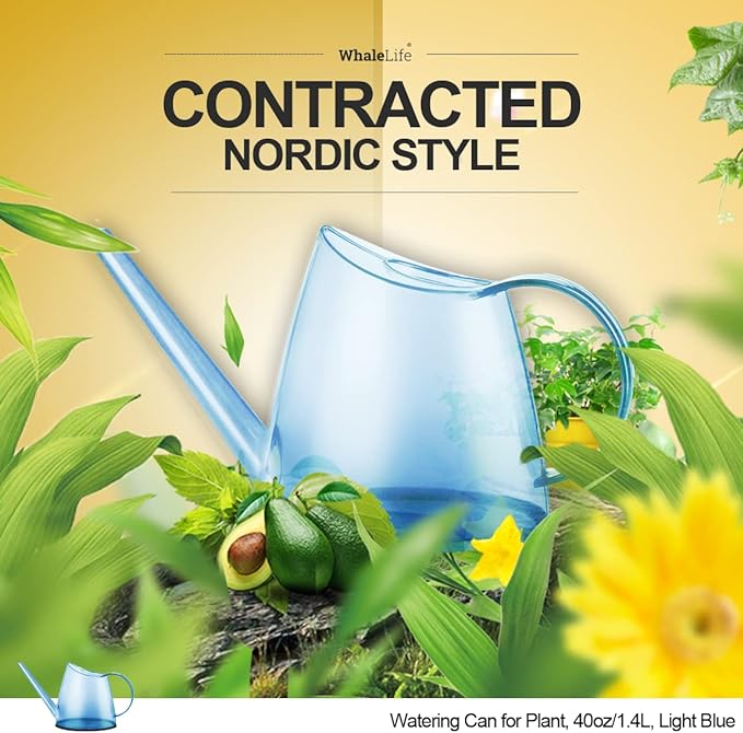 WhaleLife Indoor Watering Can for House Bonsai Plants (1.4L, Light Blue)