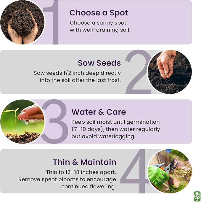 • FAST-GROWING & SUN-LOVING – Sow outdoors in full sun after the last frost. Germinate in 7-14 days, reaching up to 7’ tall in zones 3-9. Low-maintenance and fast-growing, perfect for wildflower gardens.