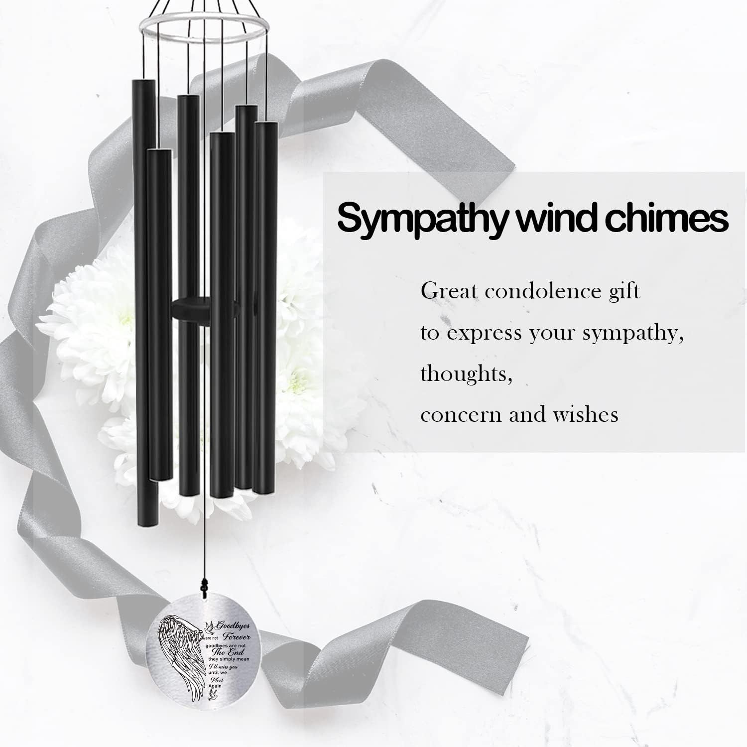 • Wind Catcher: This mourning wind chime has 6 aluminum tubes with a powder coated finish that strikes a deep, soothing melody of superior quality. The length of the wind catcher from hook to bottom is 36 inches with an adjustable Striker.