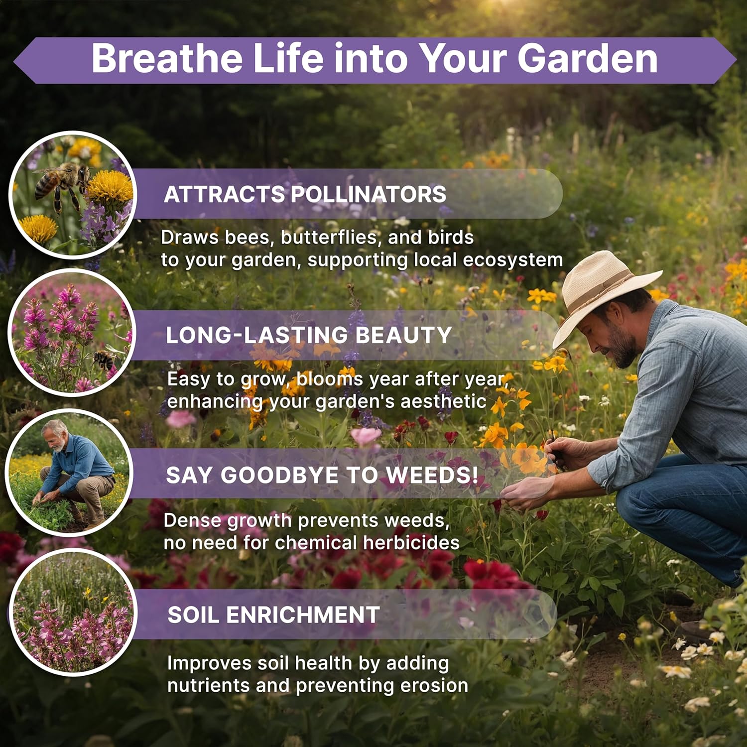 • 🌱 Easy & Fun Growing Experience with our online guides - Don’t plant disappointment - Add more colors to your wildflower garden! We send only super hearty heirloom flower seeds with the highest germination rate and fast sprout. Our detailed growing guide helps you grow seeds the garden of your dream like a PRO.