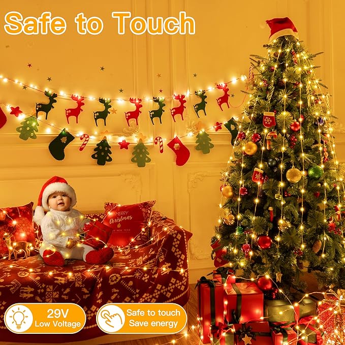 Ollny Christmas Lights Warm White, 600LED 197FT Christmas Tree Lights IP67 Waterproof, Plug in Fairy Lights with Remote 8 Modes Timer, Xmas Light for Outdoor Indoor House Holiday Decor