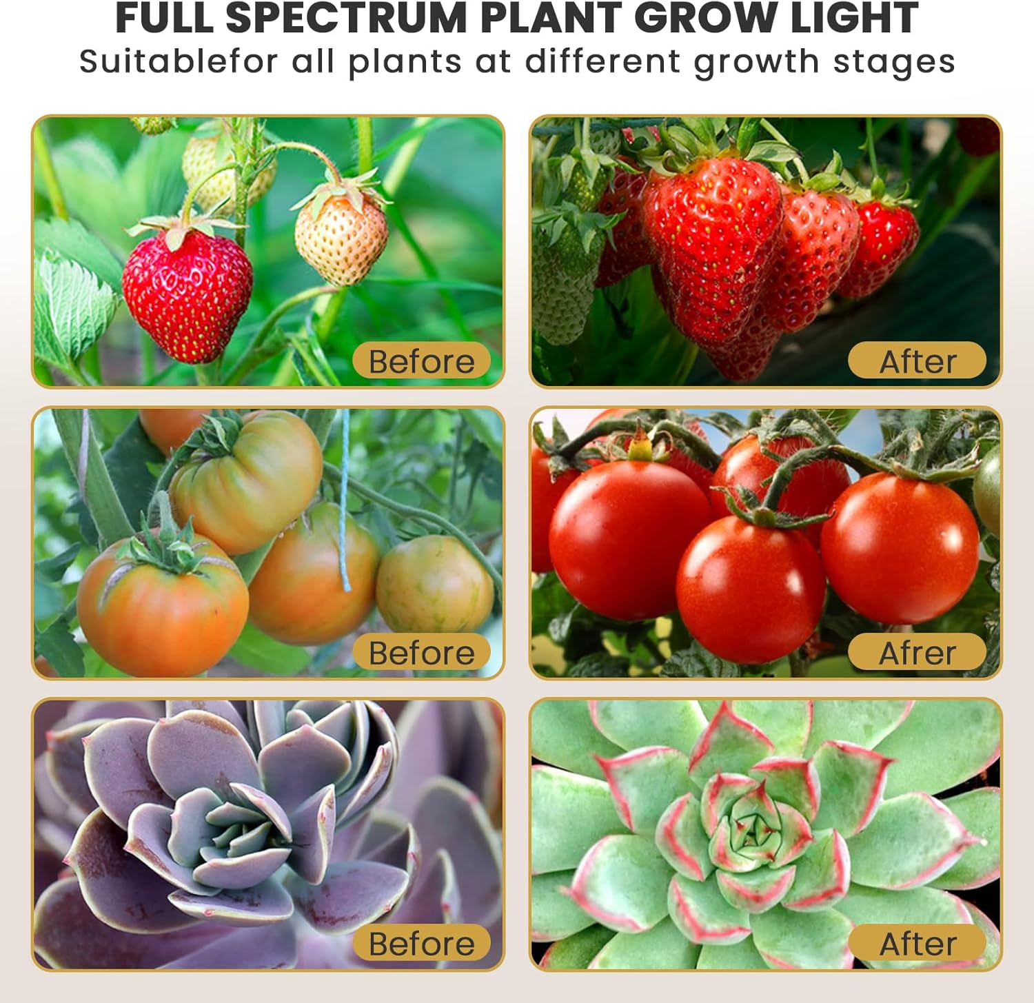 • Wide Use and Visual Quality: Our grow lights are suitable for indoor potted plants or indoor gardens, and have passed the test with a lifespan of up to 50,000 hours.