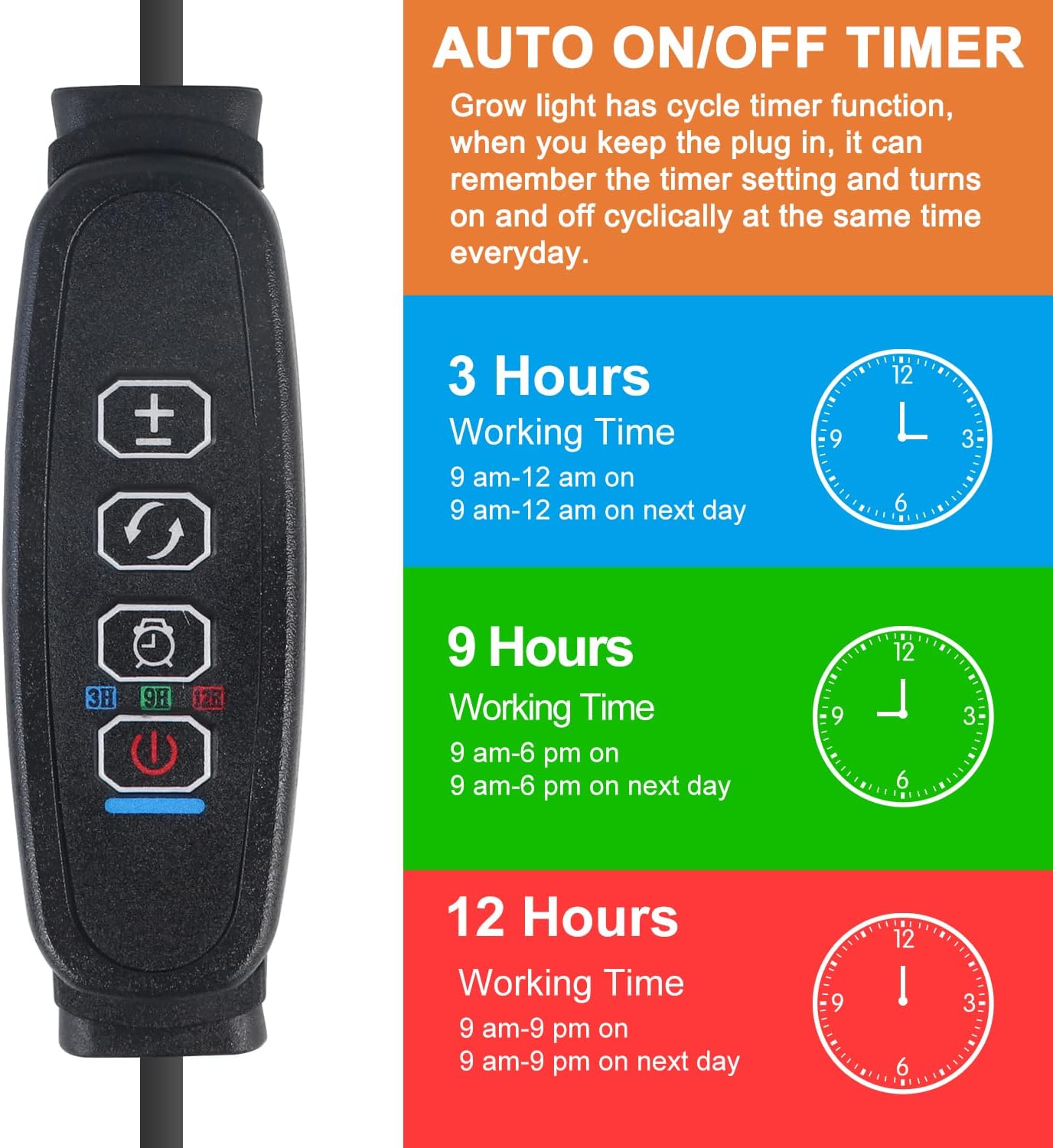 • ๐ŸŒฑใ€Timer Function & Multiple Settingsใ€‘The indoor seedling light offer the circular memory timer function with 3 options-3h/9h/12h. When keeping power, it can automatically turn on and off every day according to your settings.ใ€ You Could Operate One of Them Separately and Support 5 Levels of Dimming.ใ€‘
