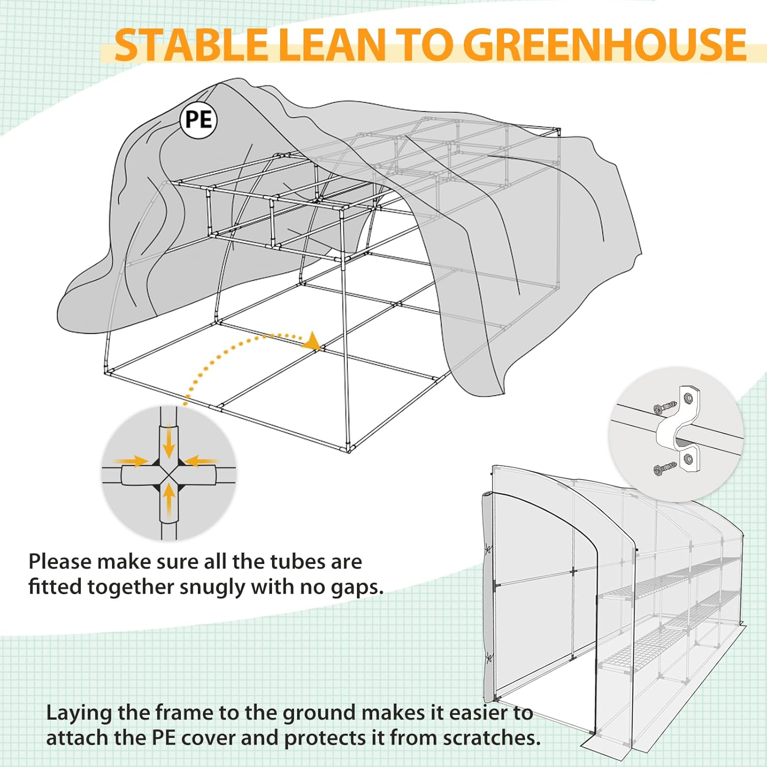 • WALL SUPPORT REQUIRED: Designed as a lean-to structure, this greenhouse must be installed against a solid, stable wall to ensure safety and durability, especially in windy or harsh weather conditions