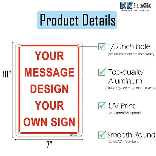 • Make Your Own Custom Sign: Upload your IMAGE and add CUSTOMIZED WORDING to create a unique custom aluminum sign. We truly hope our customized sign can help you to solve your instruction demand