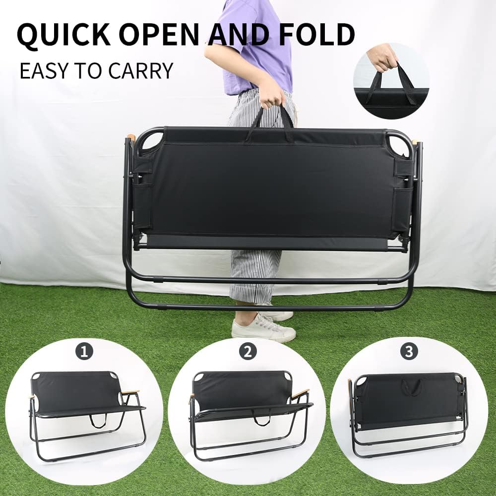 Loveseat Camping Chair for Adults Heavy Duty Double Seat Camp Chair for 2 Person Suit for Indoor Outdoor Hiking Patio Beach (Black)