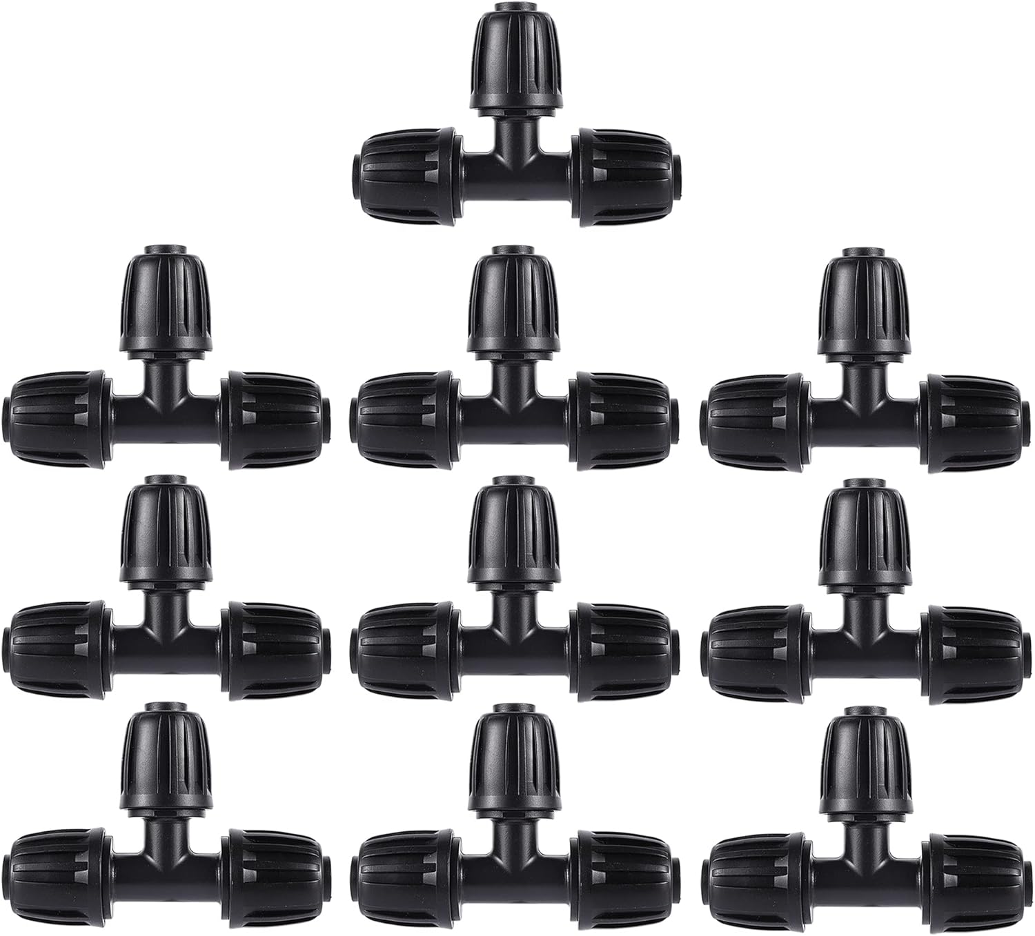 1/2 inch Irrigation Fittings Tee Connectors For (1/2" ID x0.6-0.63" OD) 16mm Drip Tubing Barbed Connectors-10 Pcs/pack