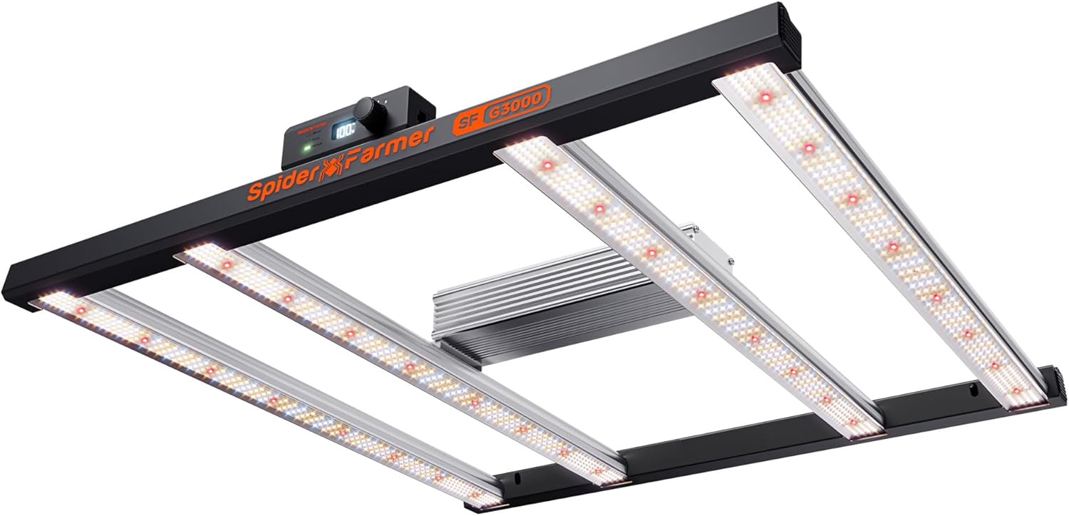 • 【DIMMABLE WITH DIGITAL DISPLAY】Easily adjust the brightness for every stage of plant growth with the dimmable G3000 Spider Farmer grow light. The built-in digital display shows the current brightness level, and the lights can be daisy-chained, controlling up to 50 units from one master light—ideal for increasing efficiency in commercial setups