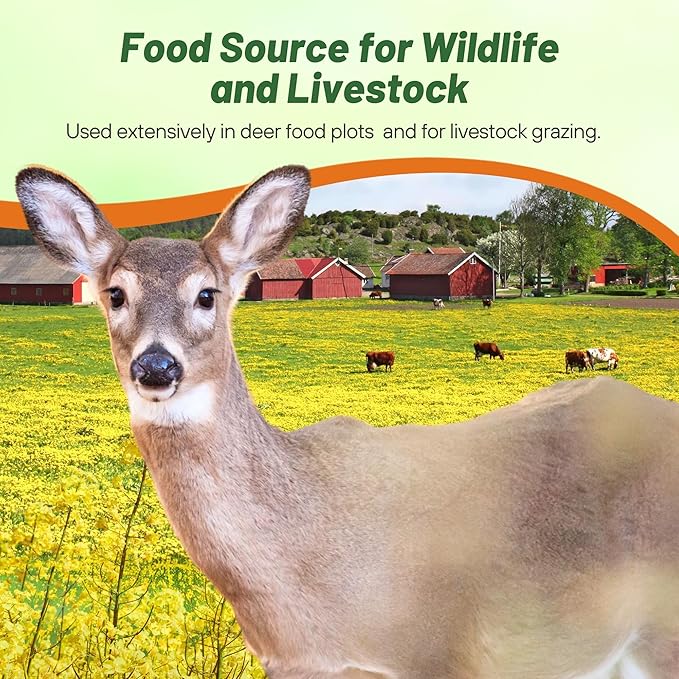• VERSATILE GROWING CONDITIONS: This cool-season annual thrives in various soil types, preferring well-drained, loamy soil but capable of growing in diverse conditions. It performs best in soils with a pH range of 5.5 to 8.3, ensuring successful growth in multiple environments. Integrate it into your strategy or mix it with other seeds such as radish seeds, clover seeds for deer, and alfalfa seeds for a diverse and resilient food plot.