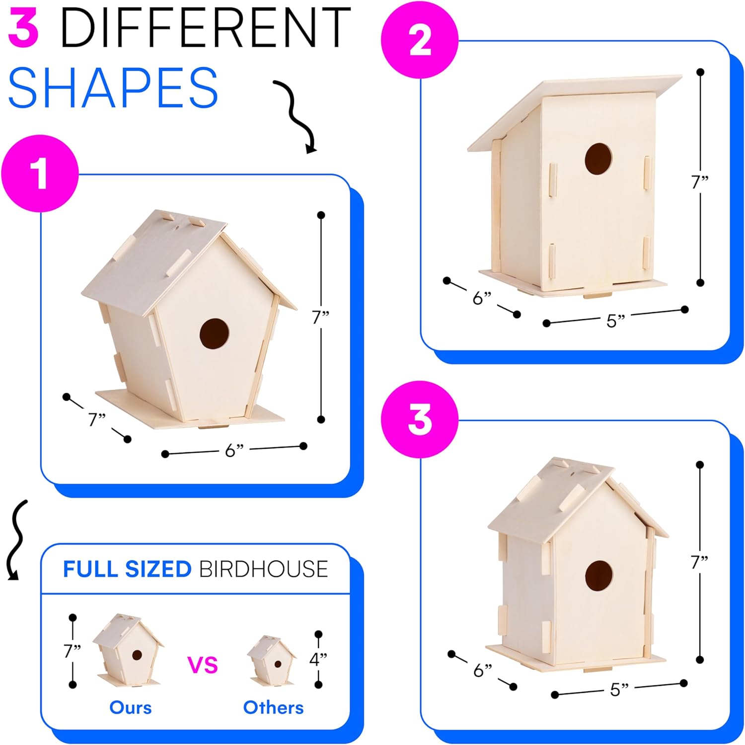 • Perfect for Group Activities: Ideal for arts and crafts for kids 4-6, birthday parties, or school projects; each set of wood bird houses to paint offers hours of creative fun for kids and adults