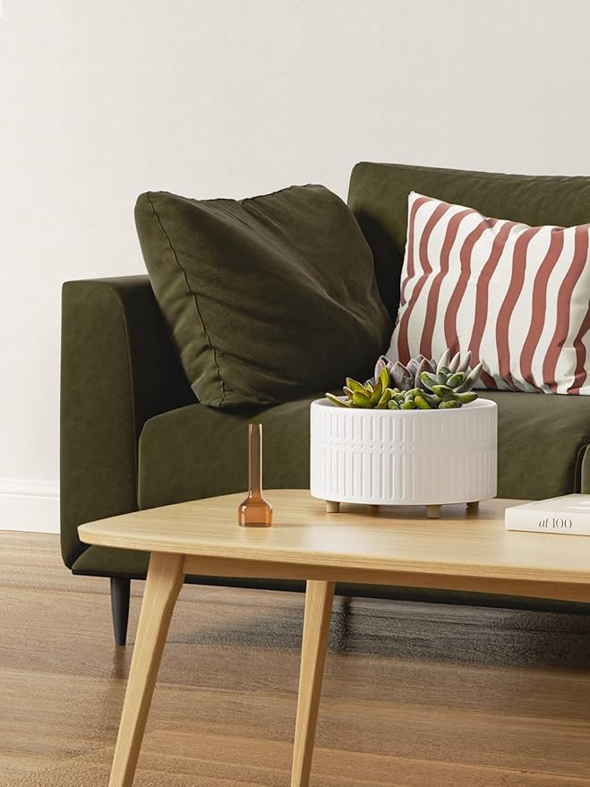 • Footed Design: Small raised feet improve air circulation beneath the succulent planter, and soft rim indent lines add layered shadows under the glaze—resulting in a calm, sculpted profile that fits Japandi, boho, and contemporary décor