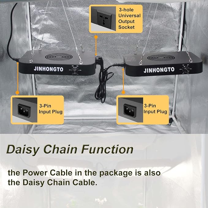 • 【Daisy Chain Function】This led grow lights for indoor plants designed with an input plug and an output outlet. You can connect multi-lights max 4 units together by daisy chain function but only need one outlet.