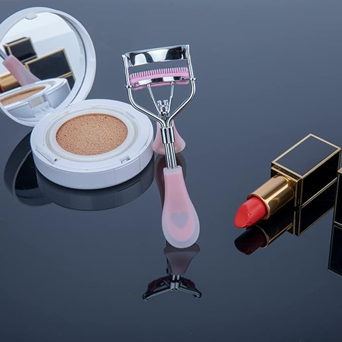 Stainless Steel Eyelash Curler with Built-in Comb Pinch Pain-Free Suitable for Any Eye Shapes and Sizes, with 5 Silicone Refill Pads (Hazy Pink)