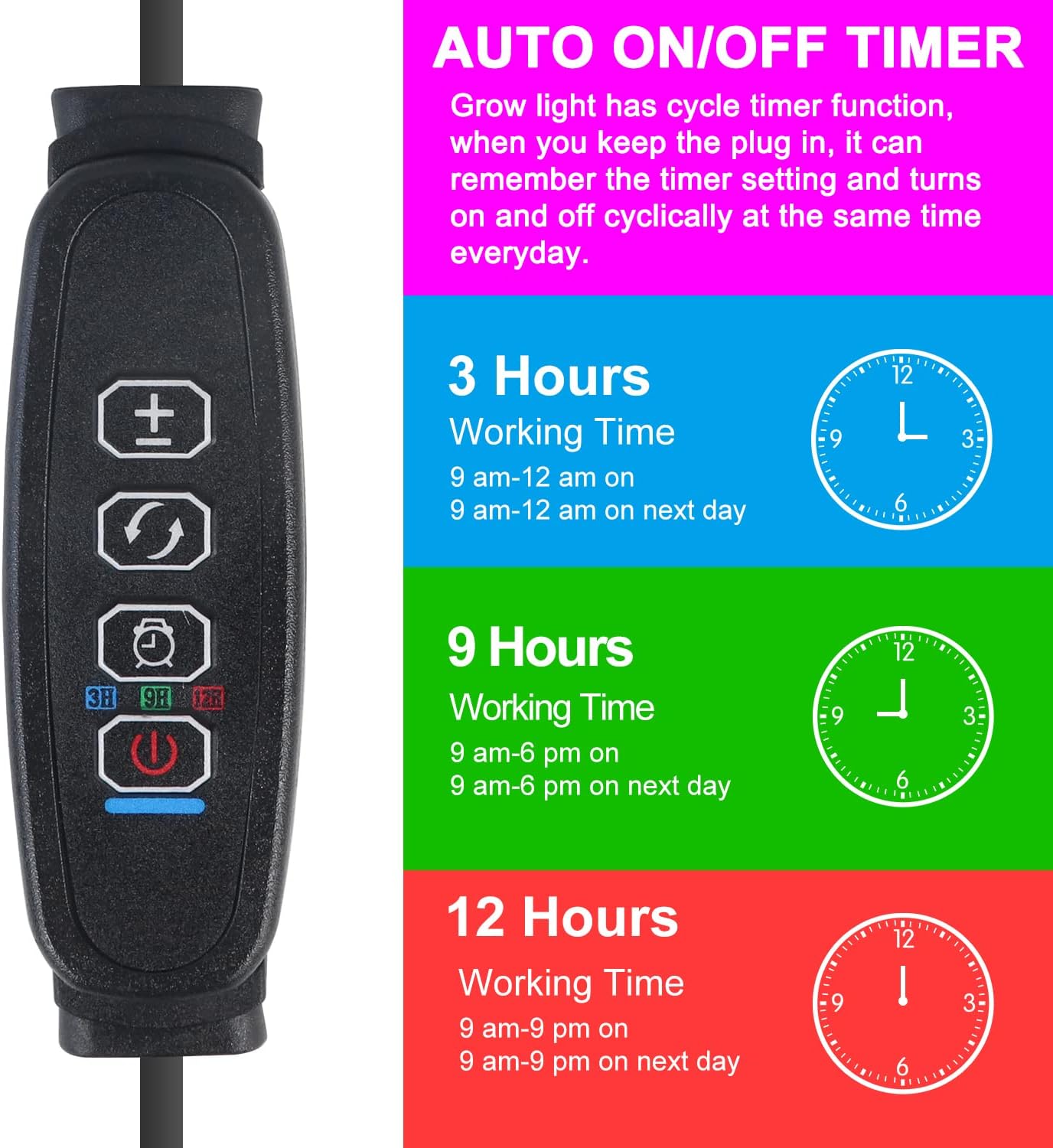 • ๐ŸŒฑใ€Timer Function & Multiple Settingsใ€‘The indoor seedling light offer the circular memory timer function with 3 options-3h/9h/12h. When keeping power, it can automatically turn on and off every day according to your settings.