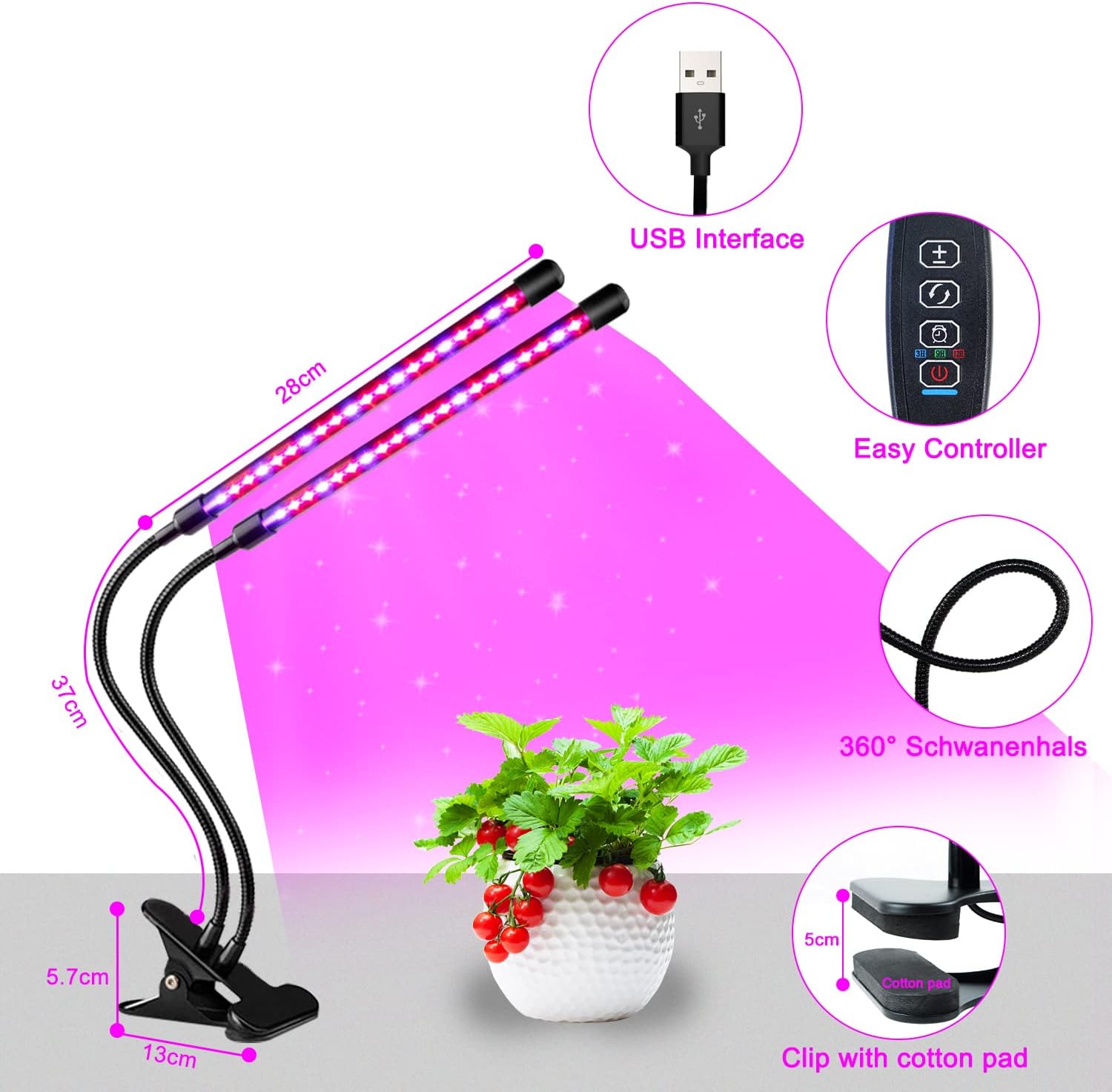 • ๐ŸŒฑ ใ€360ยฐ Gooseneck & Easy to Useใ€‘Flexible goosenecks with clips can be rotated 360 degrees making it easier for you to adjust the angle between the plant lamp and the indoor plant. itโ€™s portable and convenient to use at home or in the office.