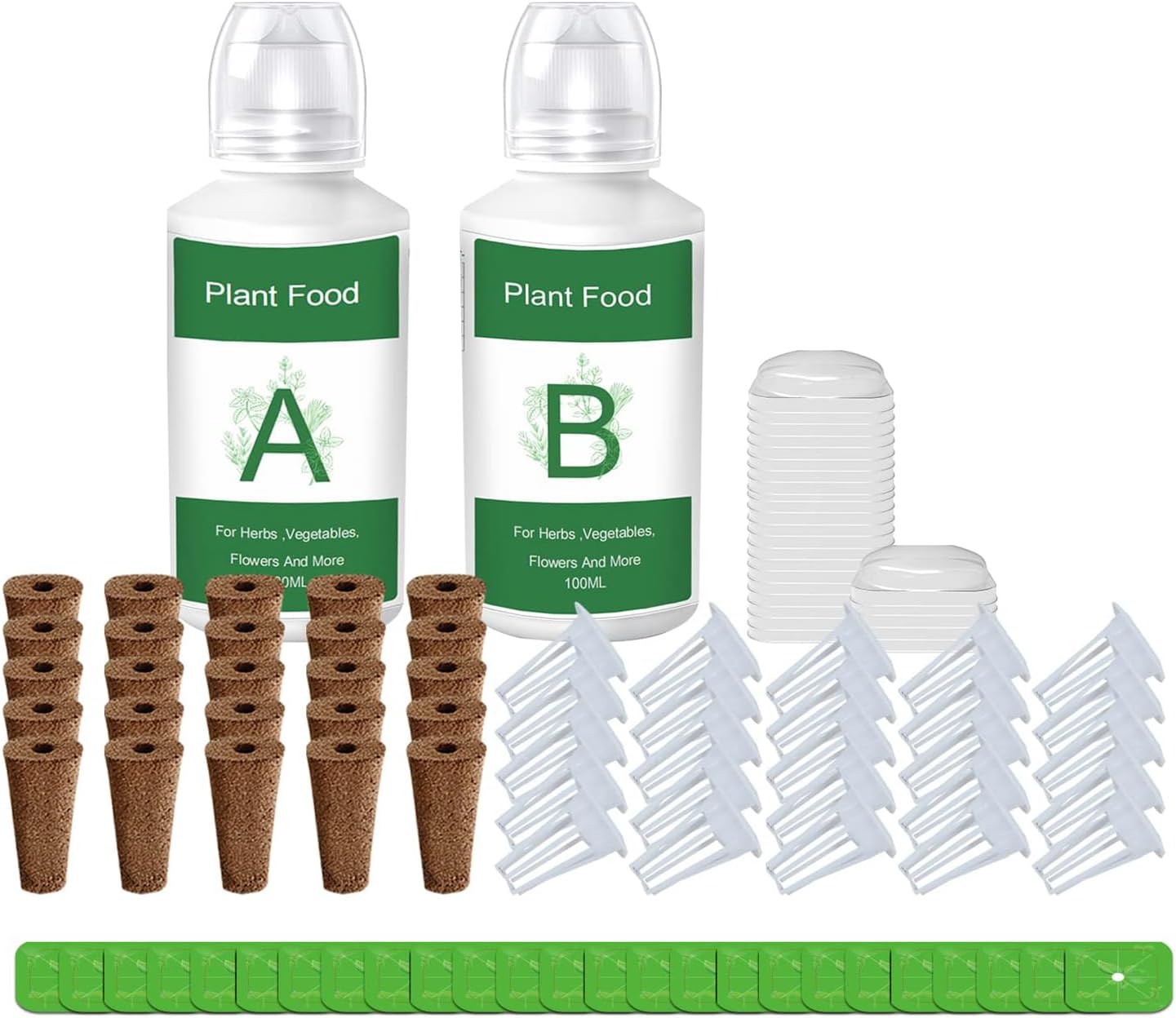 • ๐Ÿฅฌใ€What you will getใ€‘You will get grow anything seed pods kit,25pcs replacement hydroponic sponges,25pcs square hydroponic baskets,25pcs grow domes,25pcs labels and A&B hydroponic nutrient.You can use these hydroponics accessories directly on your hydroponics.