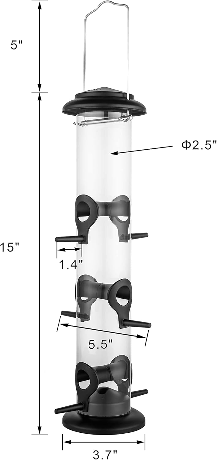 • 【Metal Bird Feeder】Metal top & base, aluminium feeding ports survived from Squirrel Damaging. Durable quality to sustain wear and worn outdoors. We adopt advanced technique for metal finishing to help the metal last longer when used outdoors.