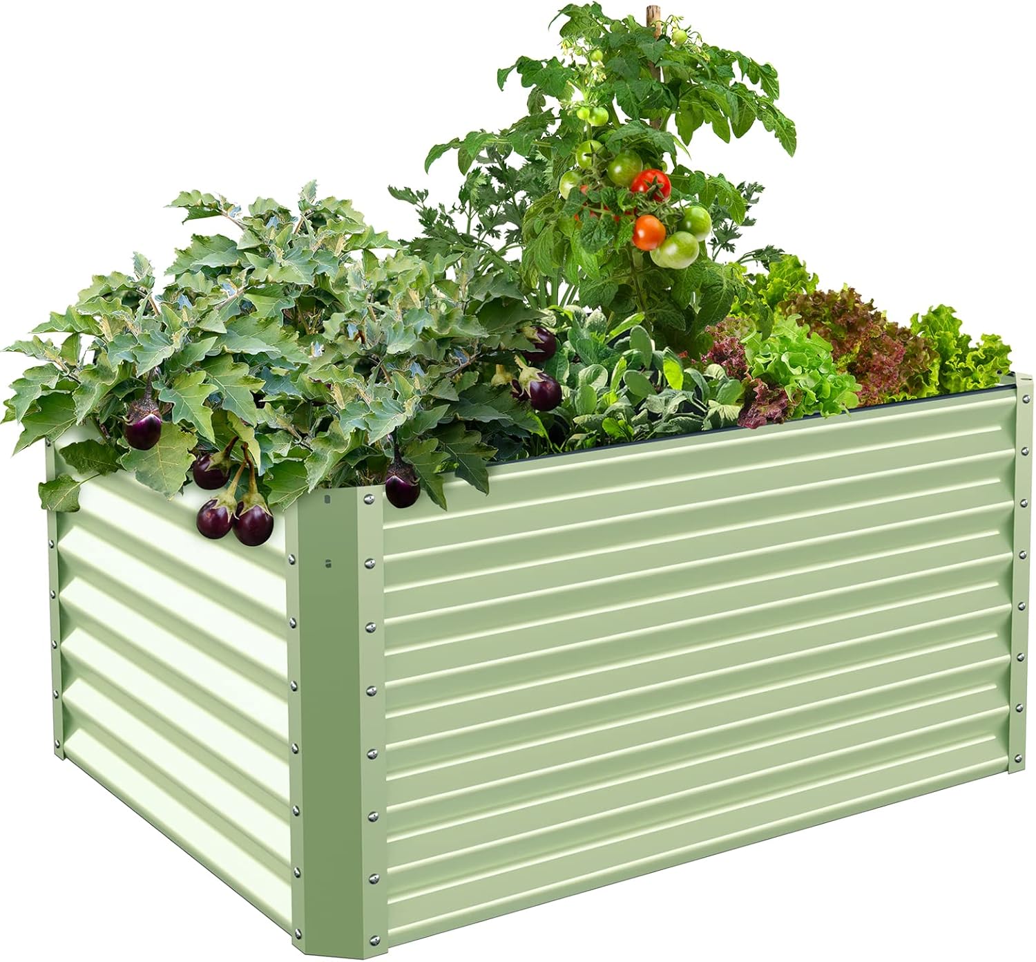Galvanized Raised Garden Bed Box Outdoor 24" Tall Raised Garden Beds Outdoor Garden Planter Raised Beds for Gardening Outdoor Raised Metal Raised Garden Beds for Vegetables 48"X36"X24", Sage Green