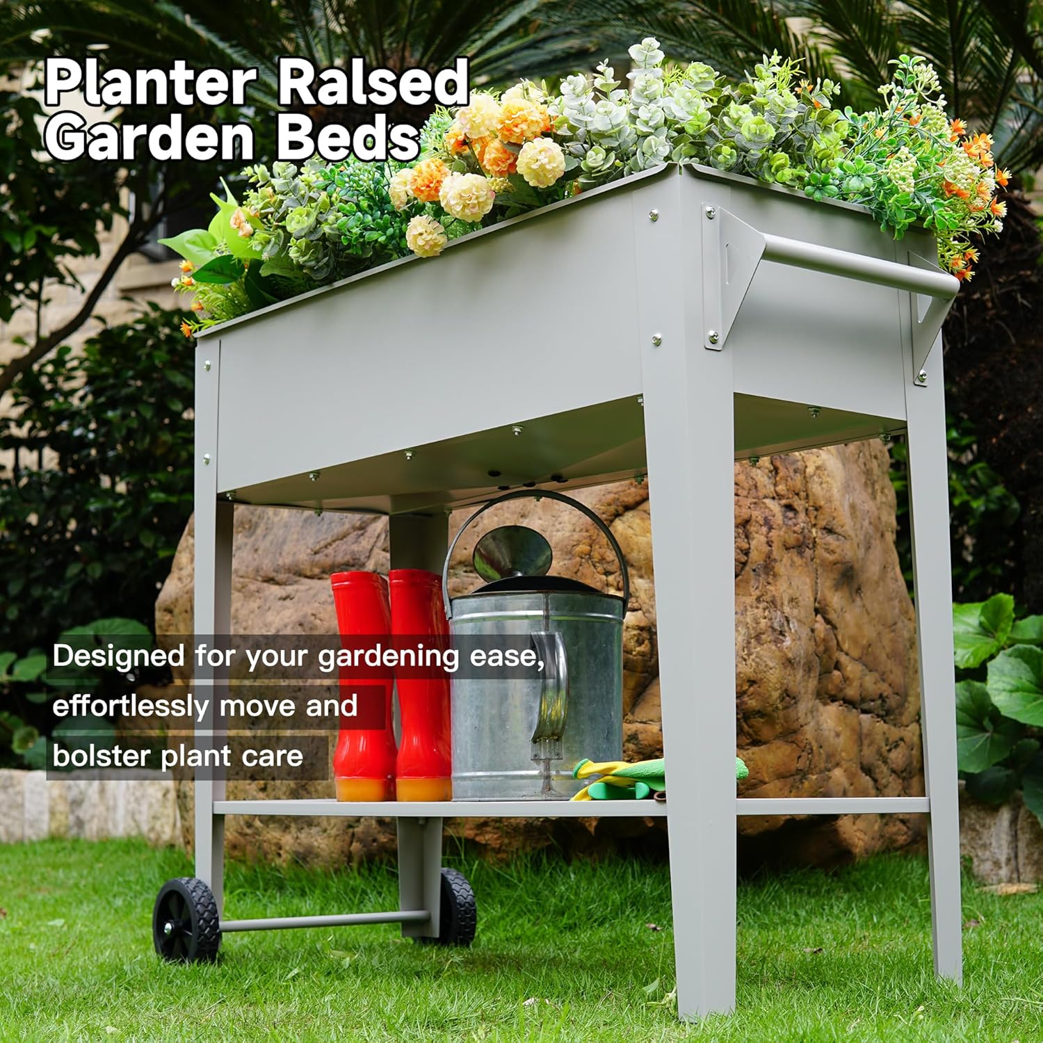๐‘๐š๐ข๐ฌ๐ž๐ ๐†๐š๐ซ๐๐ž๐ง ๐๐ž๐ ๐Ž๐ฎ๐ญ๐๐จ๐จ๐ซ Elevate Herb Garden Planter Box Outdoor Raised Planter Box with Legs On Wheels for Vegetables Flower Tomato Patio Backyard