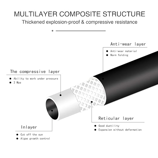 • 【ANTI-BURST DESIGN FOR MAIN LINE】: 1/2'' Main tubing is composed of three layers, with strong pressure resistance and anti-burst. 1/4'' branch tubing is also thickened, and the thickened design can make the whole irrigation system work smoothly even at the level of 35psi , and the accessories will not pop out.