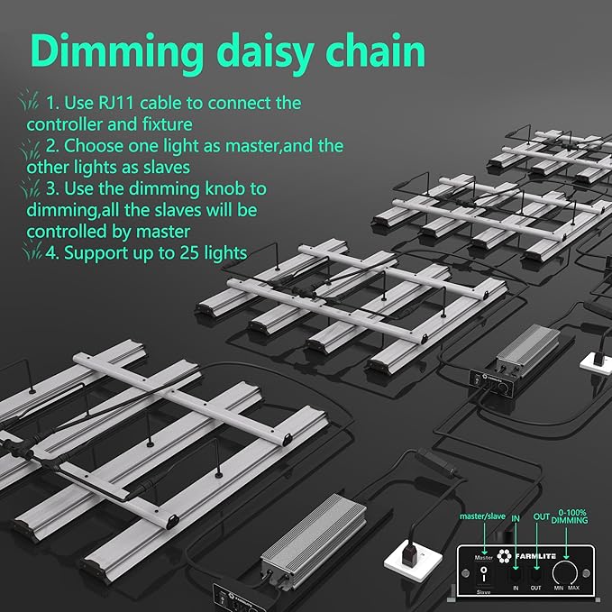 • 【Daisy-Chain Dimming】This grow light for indoor plant has a dimming button to adjust the light intensity required for different plant growth stages.The daisy-chain function allows you to connect up to 25 LED grow lamps and can be dimmed simultaneously.