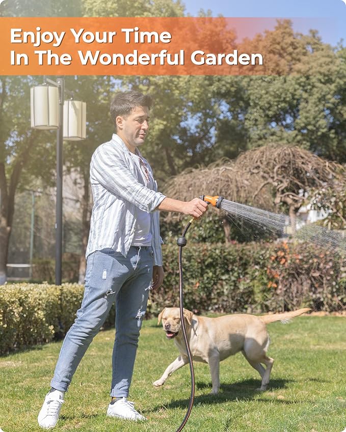 • 9-Spray Versatile Nozzle:From mist to jet, choose among 9 spray patterns for gardens, cars, patios, or cleaning. Ergonomic non-slip grip ensures comfortable handling.