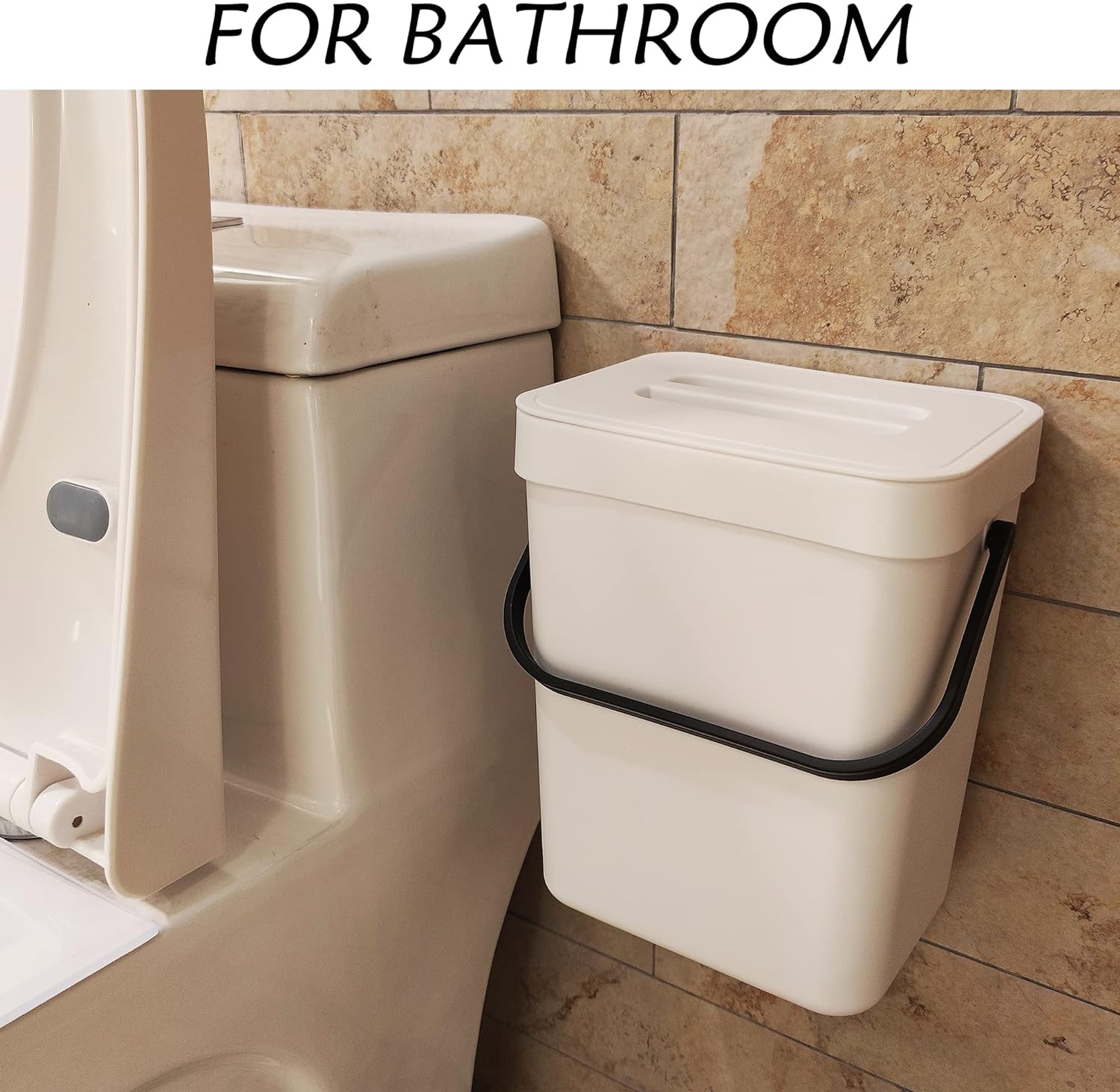 stonespace Hanging Small Trash Can with Lid Under Sink for Kitchen,1.3 Gallon/ 5L Mountable Compost Pail,Kitchen Compost Bin for Countertop, White