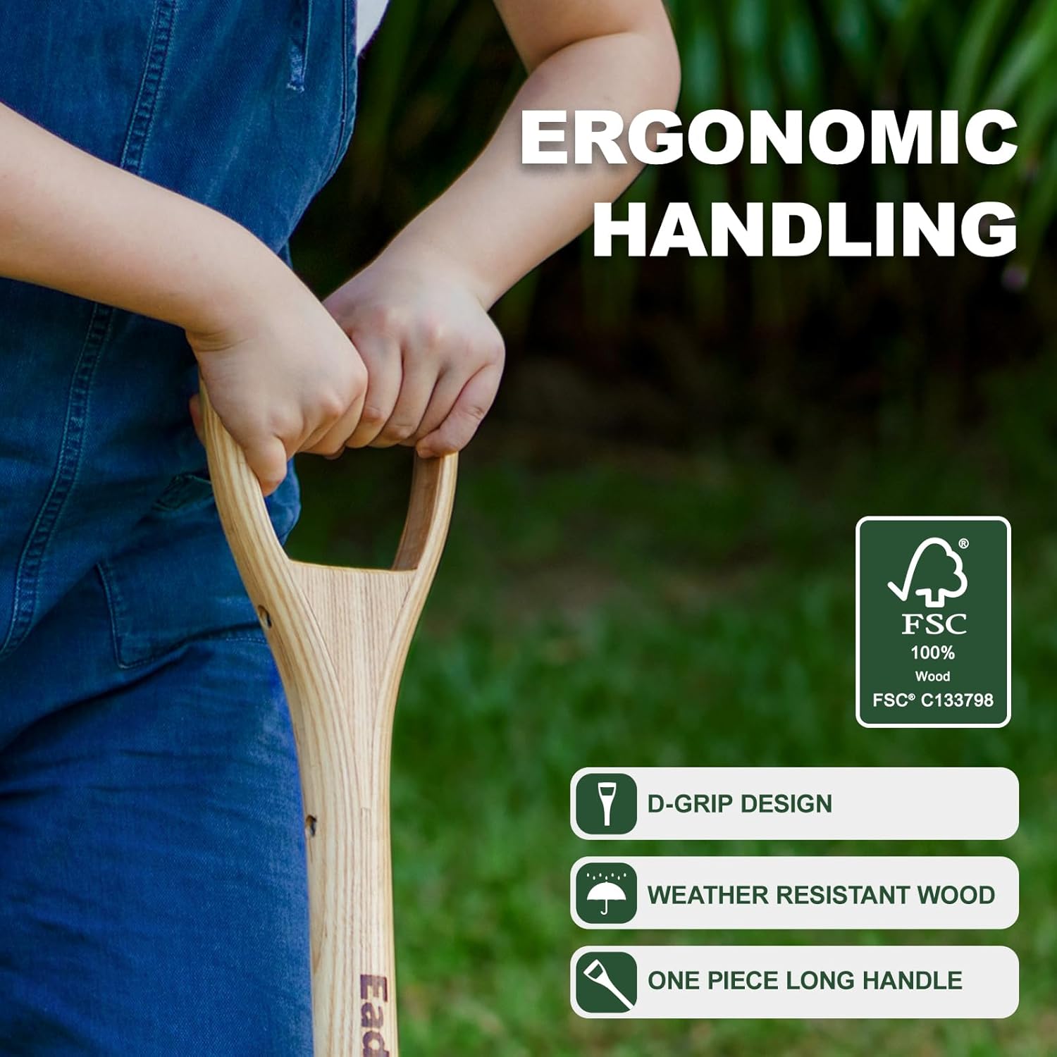 • COMFORTABLE D-GRIP HANDLE - The FSC certified Ash handle has a comfortable 'D' grip and is attached to the base via an extra-long, riveted strapped socket that introduces strength and an element of flex at this key joint. Sends lifting leverage to the lower handle to lift heavier loads with ease. Back saving design improves posture and reduces the need to bend.