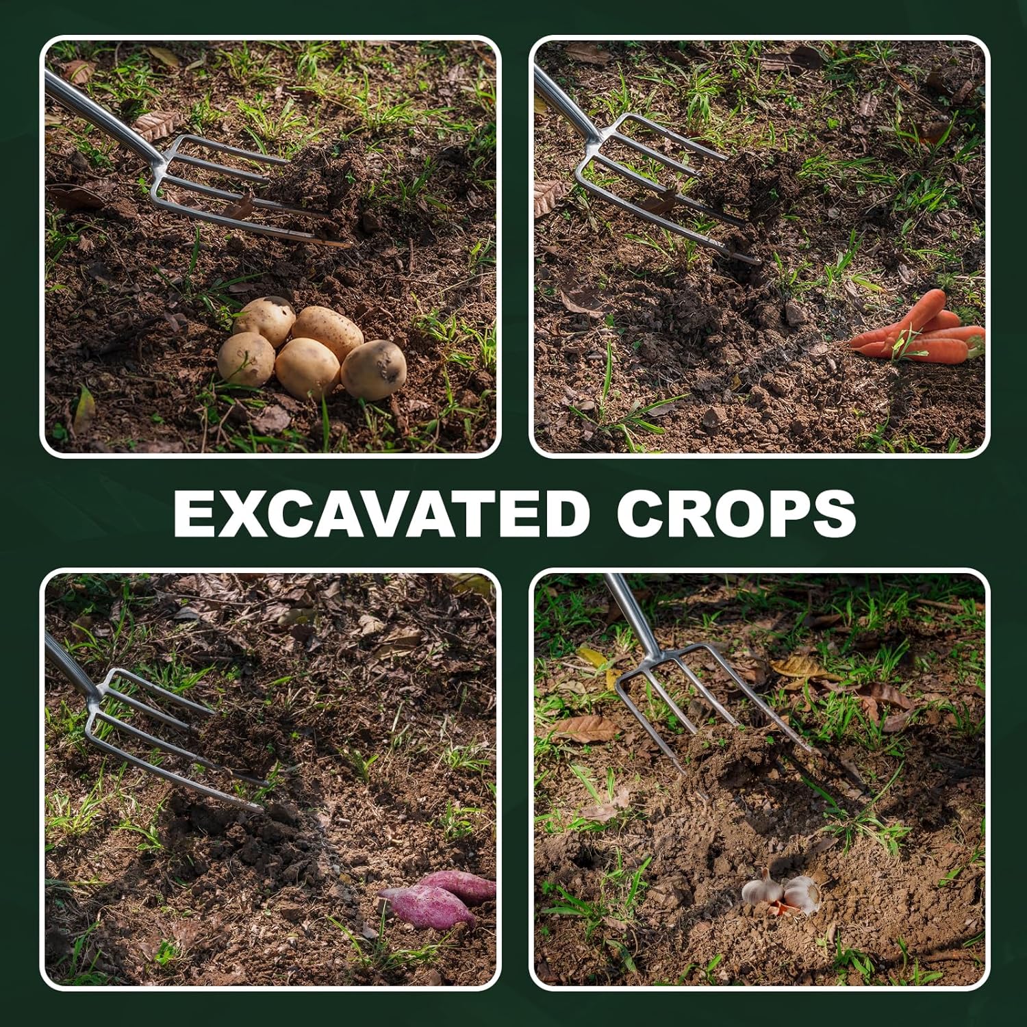 • HIGHLY FUNCTIONAL GARDEN TOOL - Eadwiella digging fork is a great way to loosen the soil in preparation for digging. It is also great for working organic material, fertilizer, or compost into your garden beds. It is amazing for getting root vegetables up to the surface to be harvested. They’re great for turning your compost pile. It is nearly a requirement for anyone with a serious vegetable garden.