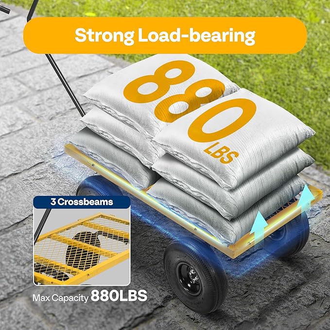 • POWERFUL LOAD AND LARGE CAPACITY - VIVOHOME's multi-functional garden cart has meticulous workmanship and strong design sense; Its maximum load can reach 880 lbs., which is more than twice that of competitors; there's nothing you cannot pull away with this practical and convenient cart (to prolong its life, long-term heavy loading is not recommended)