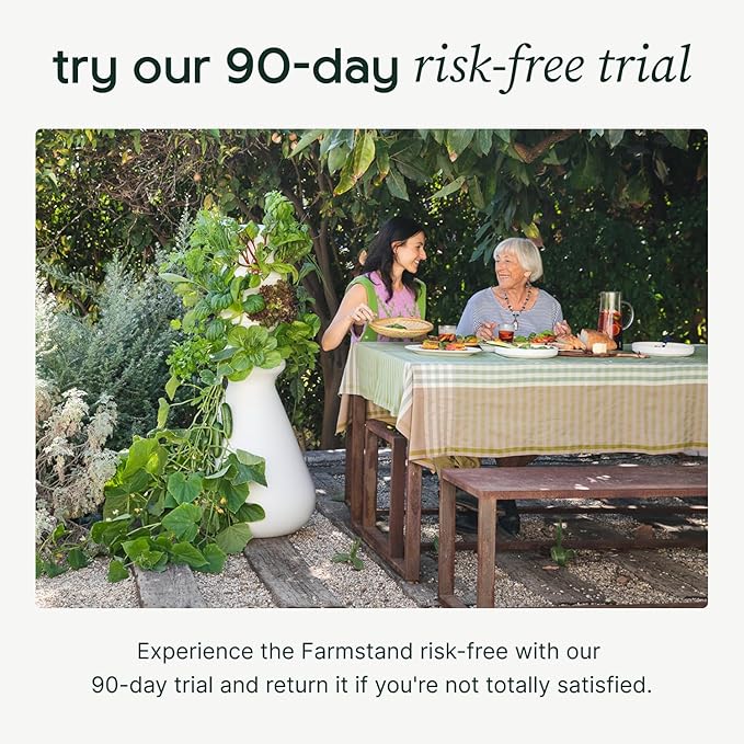 • GROW INDOORS OR OUTDOORS: Grow 24 plants at a time in your Farmstand. Easily add additional levels when you want to grow more on your Farmstand. Grow in a sunny spot outside in your backyard or balcony - or grow indoors with the help of our optional Glow Rings (*Sold Separately*).